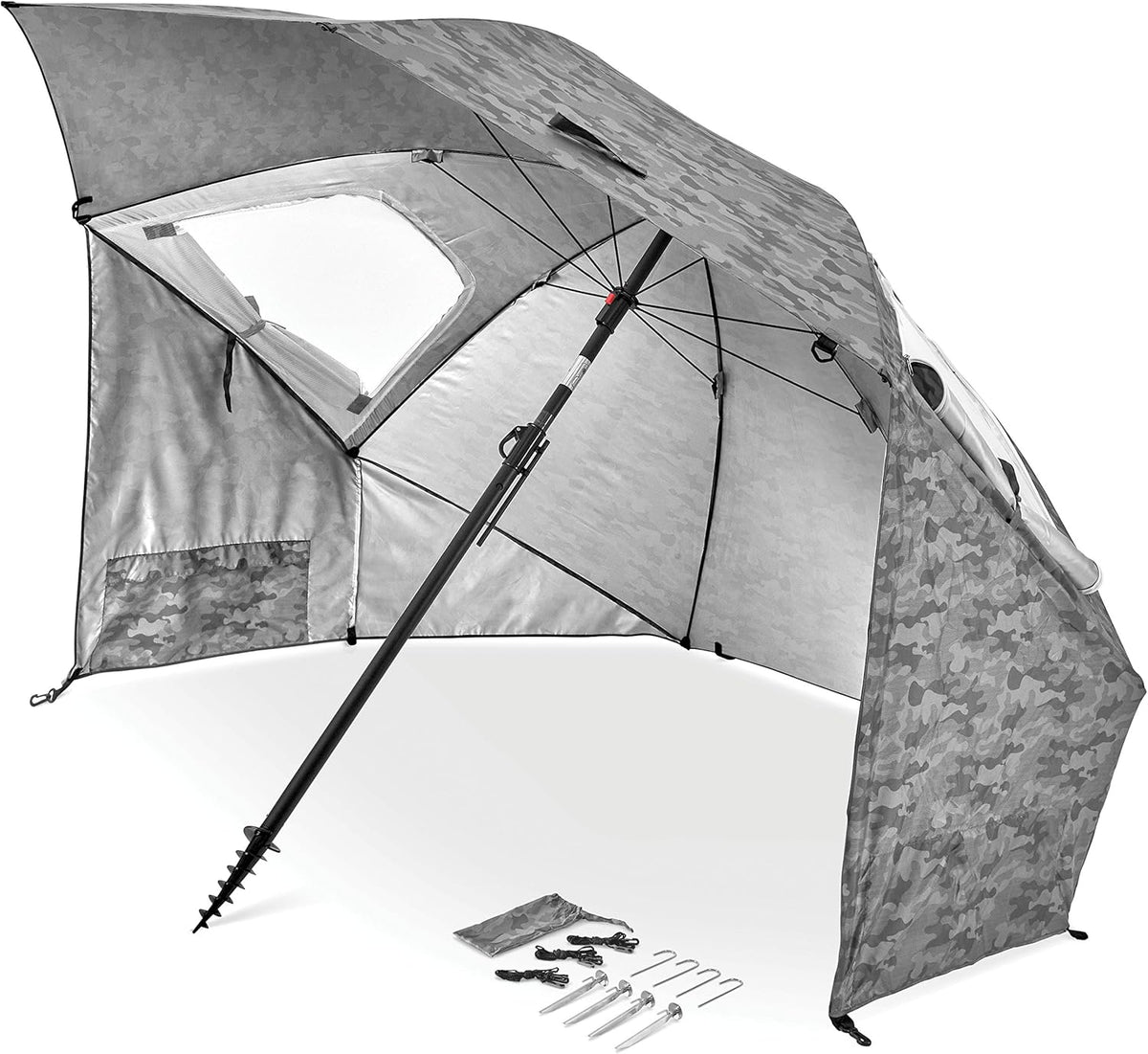 Robust Anchoring System: A heavy-duty 1.25-inch center pole provides exceptional durability and stability, even in windy conditions. The oversized auger bit with a twist handle ensures secure anchoring in sand, grass, and dirt. Additional stakes and guy lines offer extra security for peace of mind.